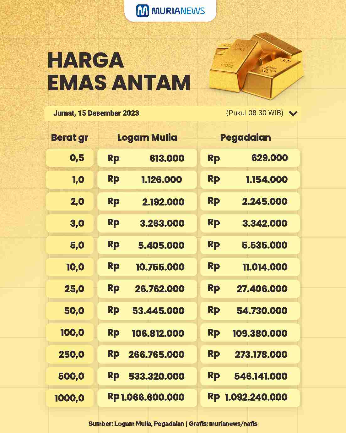 Berikut Rincian Harga Emas Antam Jumat 15 Desember 2023: