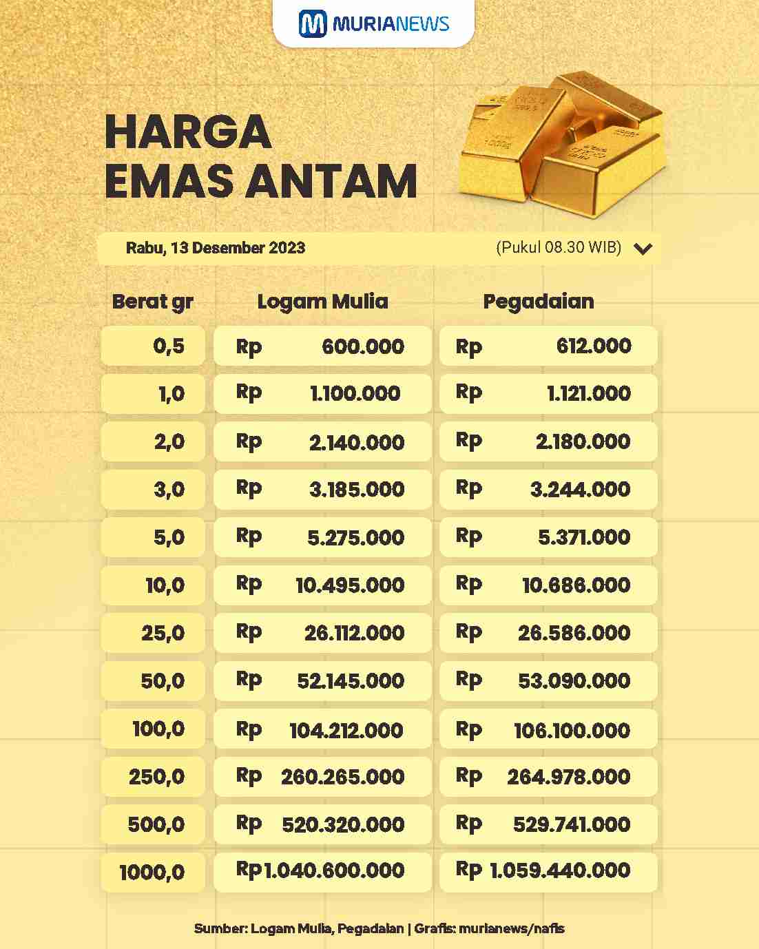 Berikut harga emas Antam Rabu, 13 Desember 2023: