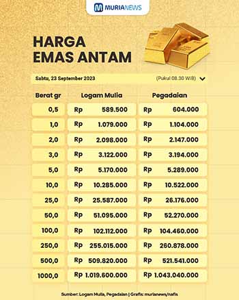 Berikut harga emas Antam di Logam Mulia dan Pegadaian Sabtu 23 September 2023: