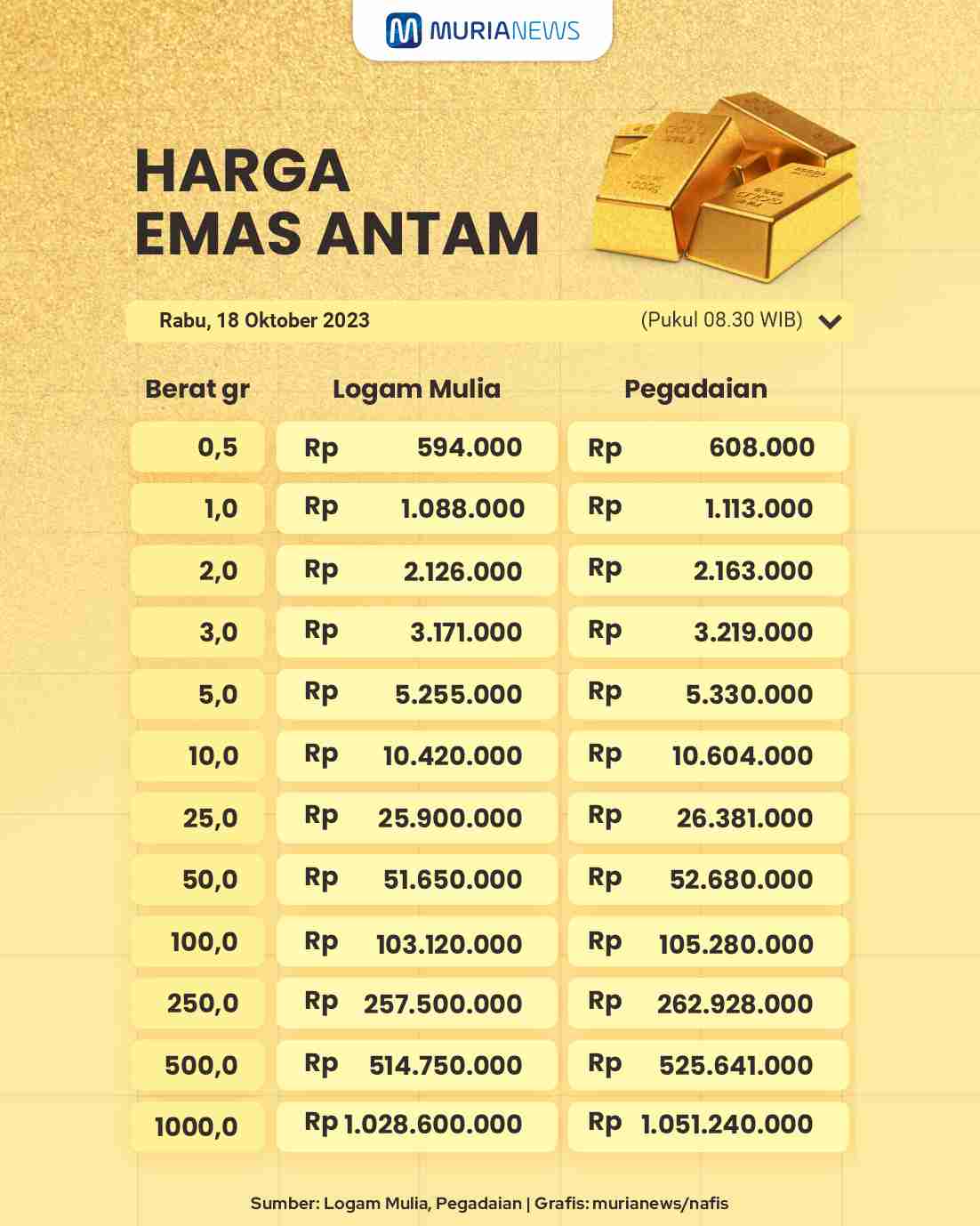 Berikut harga emas hari ini, Rabu (18/10/2023).
