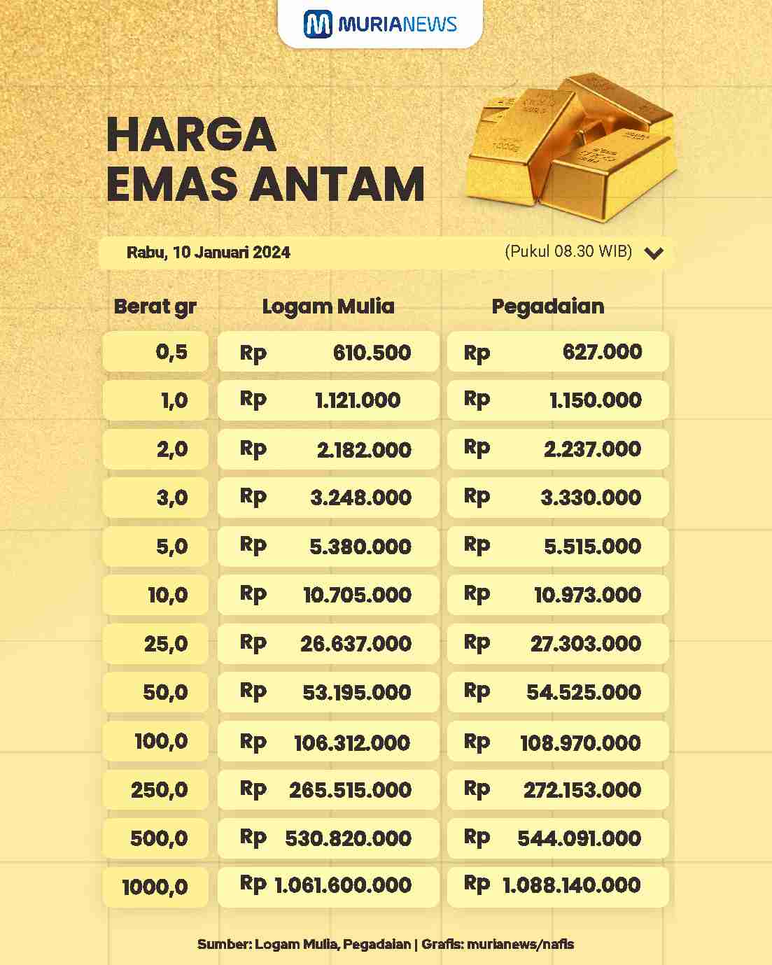 Berikut daftar harga emas hari ini, Rabu (10/1/2024):